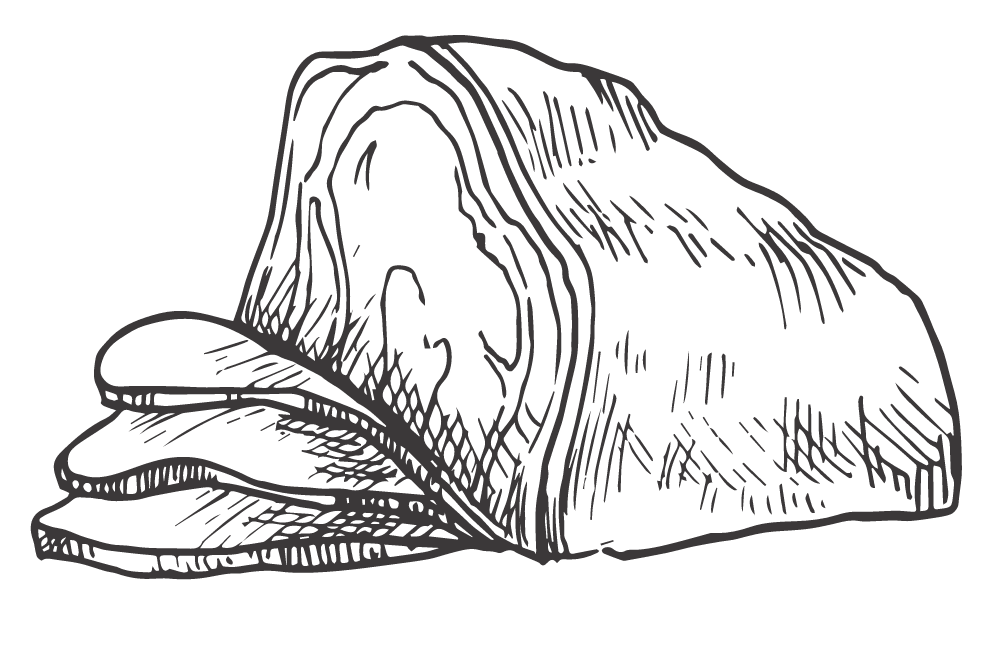 Base crème*, Mozzarella, Oignons jaunes*, Poitrine fumée*, Pomme de terre*, Marbré d'Eyssal*